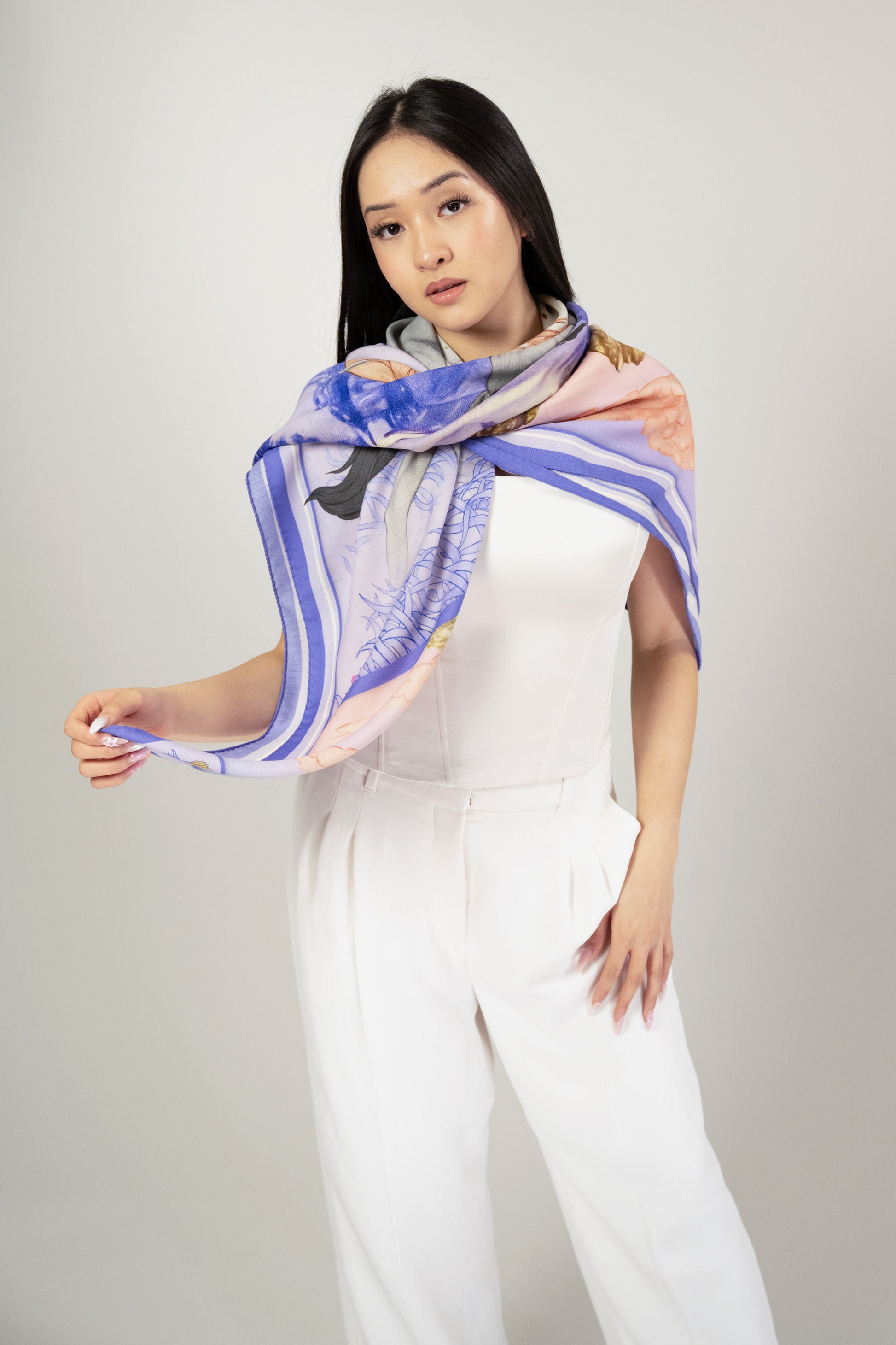 Wild Horizon Periwinkle Dream Wool Silk Scarf